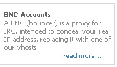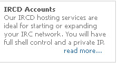 ShellFX is dedicated to providing our clients with fast and stable UNIX services with unbeatable customer support. We specialize in IRC related services with Shell Accounts for bots and bouncers like eggdrop, psotnic, BNC bouncer proxies (psybnc), IRCD Server and Web Hosting. We hope you will try our services. |